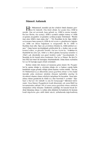 Kelime olarak tabi olunan yol manasına gelen sünnet; Hz. Peygam-