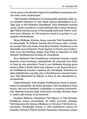 İkinci Bölümde; Türk Ortodoksların Cumhuriyet ilanından sonraki