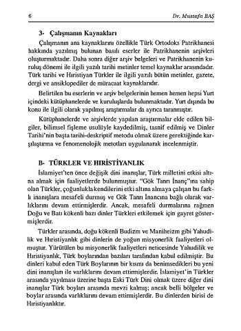 Çalışmanın ana kaynaklarını özellikle Türk Ortodoks Patrikhanesi