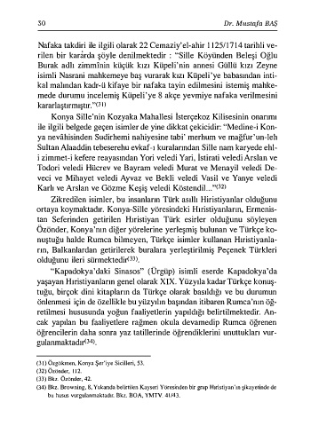 (34) Bkz. Browning, 8, Yukarıda belirtilen Kayseri Yöresinden bir grup Hıristiyan'ın şikayetinde de