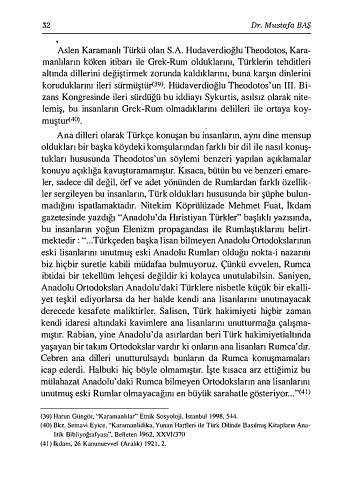 (39) Harun Güngör, "Karamanlılar" Etnik Sosyoloji, İstanbul ı 998, 544.