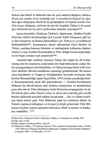 (44) İzzet Ulvi, "Hıristiyan Türkler", Hakimiyet-i Milliye, ı2. Kanunuevvel (Aralık) 192 1 .