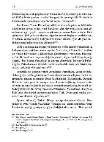 (6 1 ) Bkz. Hikmet Yavuz Ercan, "Fener ve Türk Ortodoks Patrikhanesi", Ankara Üniversitesi Dil,