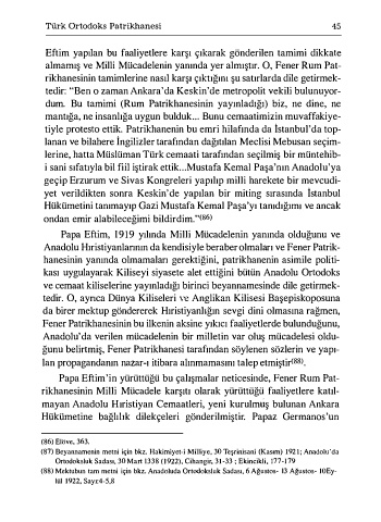 (88) Mektubun tam metni için bkz. Anadoluda Ortodoksluk Sadası, 6 Ağustos- 13 Ağustos- !O Ey