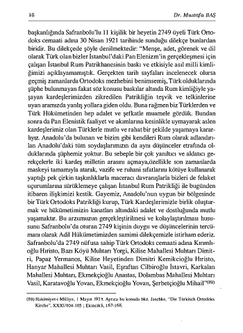 (89) Hakimiyet-i Milliye, 1 Mayıs 192 t. Ayrıca bu konuda bkz. Jaschke, "Die Türkisch Ortodoks