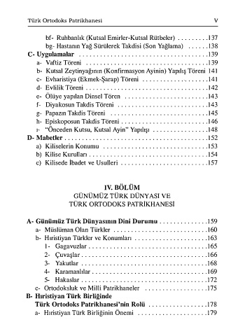 Türk Ortodoks Patriklıanesi'nin Rolü . . . . . . . . . . . . . . . . . 1 7 8