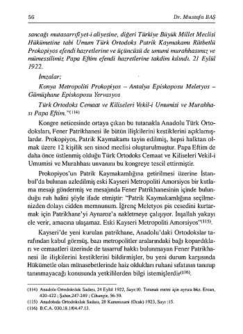 ( 1 14) Anadolu Ortodoksluk Sadası, 24 Eylül 1922, Sayı:IO. Tutanak metni için ayrıca bkz. Ercan,