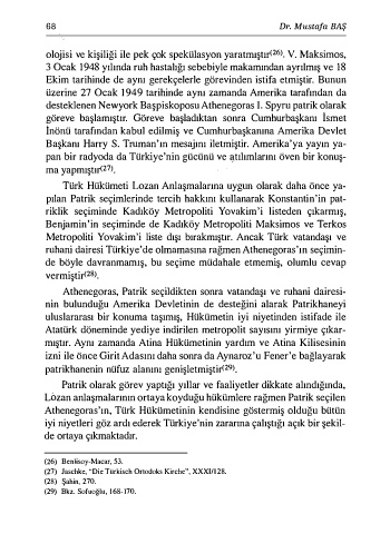 Athenegoras'ın, Türk Hükümetinin kendisine göstermiş olduğu bütün