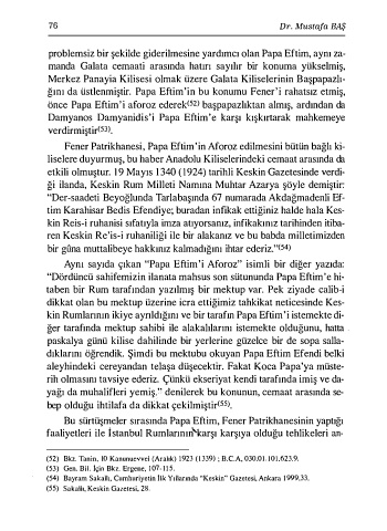 dıklarını öğrendik. Şimdi bu mektubu okuyan Papa Eftim Efendi belki