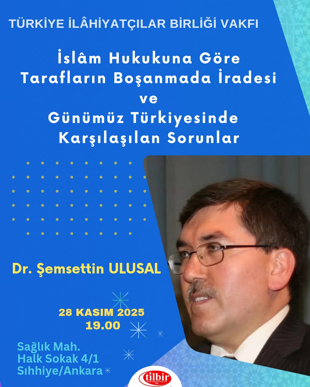 | Dr. Şemsettin ULUSAL tarafından 28 Kasım 2025 tarihinde saat 19.00'da vakfımızda "İslam Hukukuna Göre Boşanmada Tarafların İradesi ve Günümüz Türkiye'sinde Karşılaşılan Sorunlar" konulu bir sunum ger |