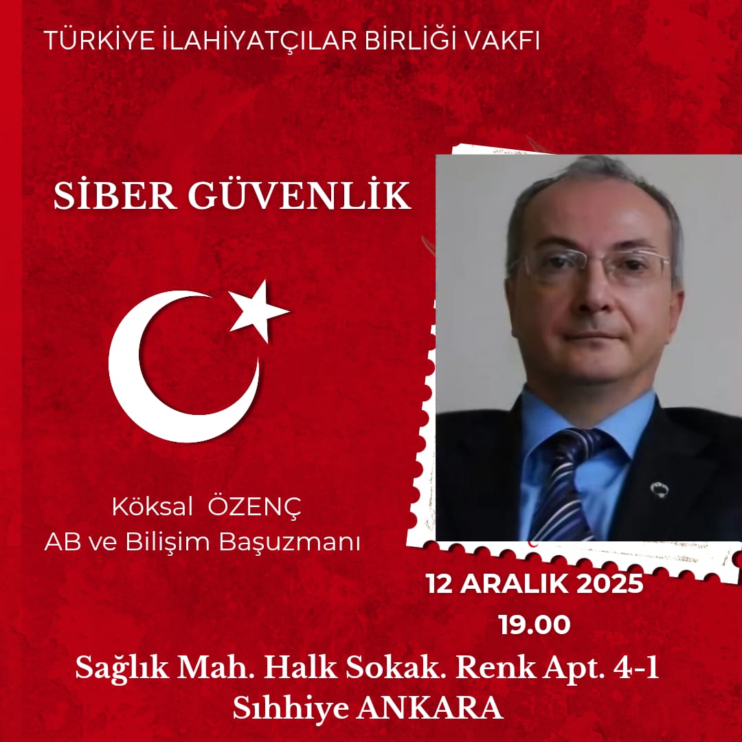 | Köksal ÖZENÇ tarafından 212 Aralık 2025 tarihinde saat 19.00'da vakfımızda "' Siber Güvenlik" konulu bir sunum gerçekleştirilecektir. |
