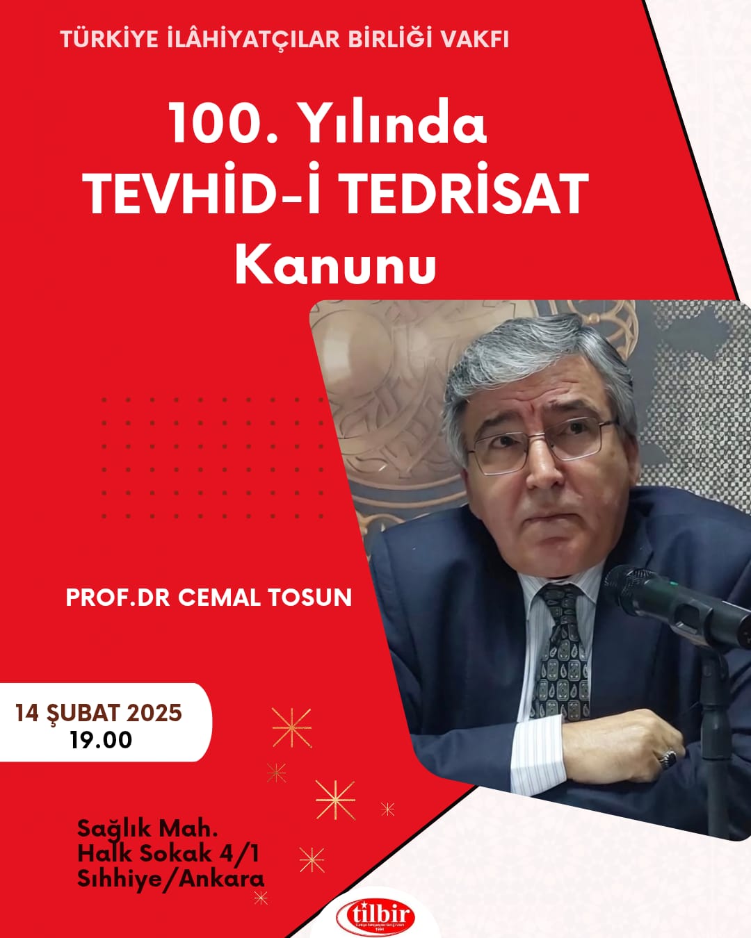 | Prof. Dr. Cemal TOSUN, 14 Şubat 2025 Cuma akşamı saat 19.00'da vakfımızda "100. Yılında TEVHİD-İ TEDRİSAT Kanunu" konulu bir konferans verecektir. |