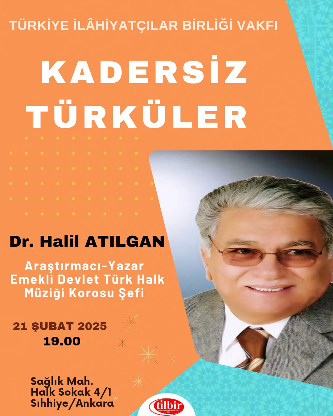 | Araştırmacı – Yazar, Emekli Devlet Türk Halk Müziği Korosu Şefi Dr. Halil ALGAN tarafından 21 Şubat 2025 Cuma günü saat 19.00’da vakfımızda bir sunum gerçekleştirilecektir. |