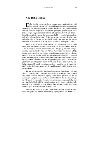 Kur’an, birçok ayeti ile ana-baba hakkını vurgulamaktadır. Lokman